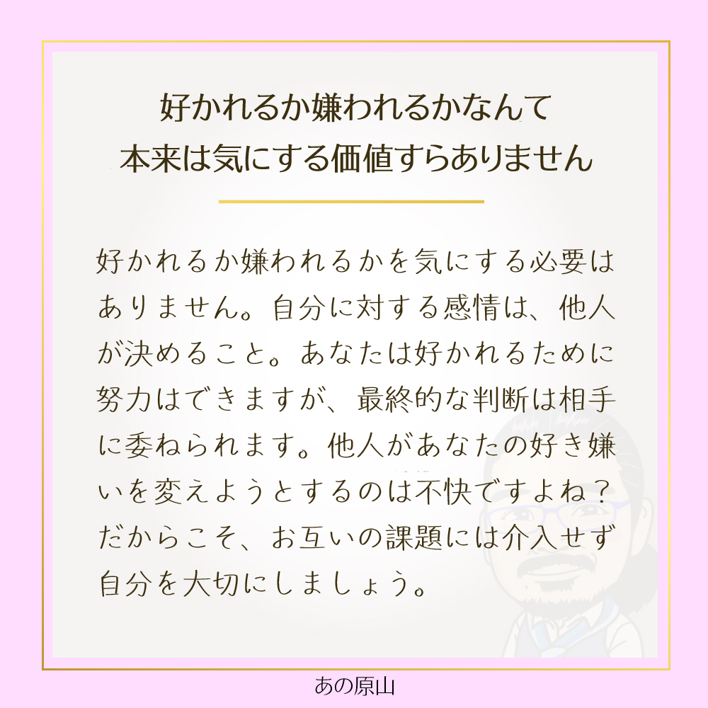 その結果、好かれたならラッキー。もしそうでなくても、それは相手の課題であって、自分を責める必要はありません。