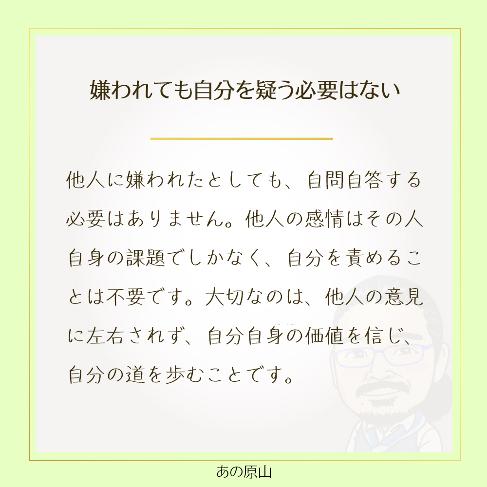 他人に嫌われたとしても、あなたが自問自答して自分を責める必要はありません。
