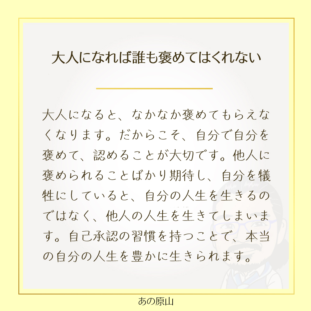 子どもの頃は些細なことで褒めてもらえたのに、大人になった途端、褒め言葉が減り、認めてもらうことが少なくなる。