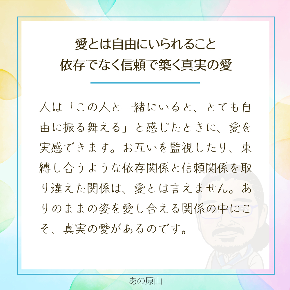 本当の愛とは、お互いを尊重し、束縛せずに自由でいられる関係のことです。