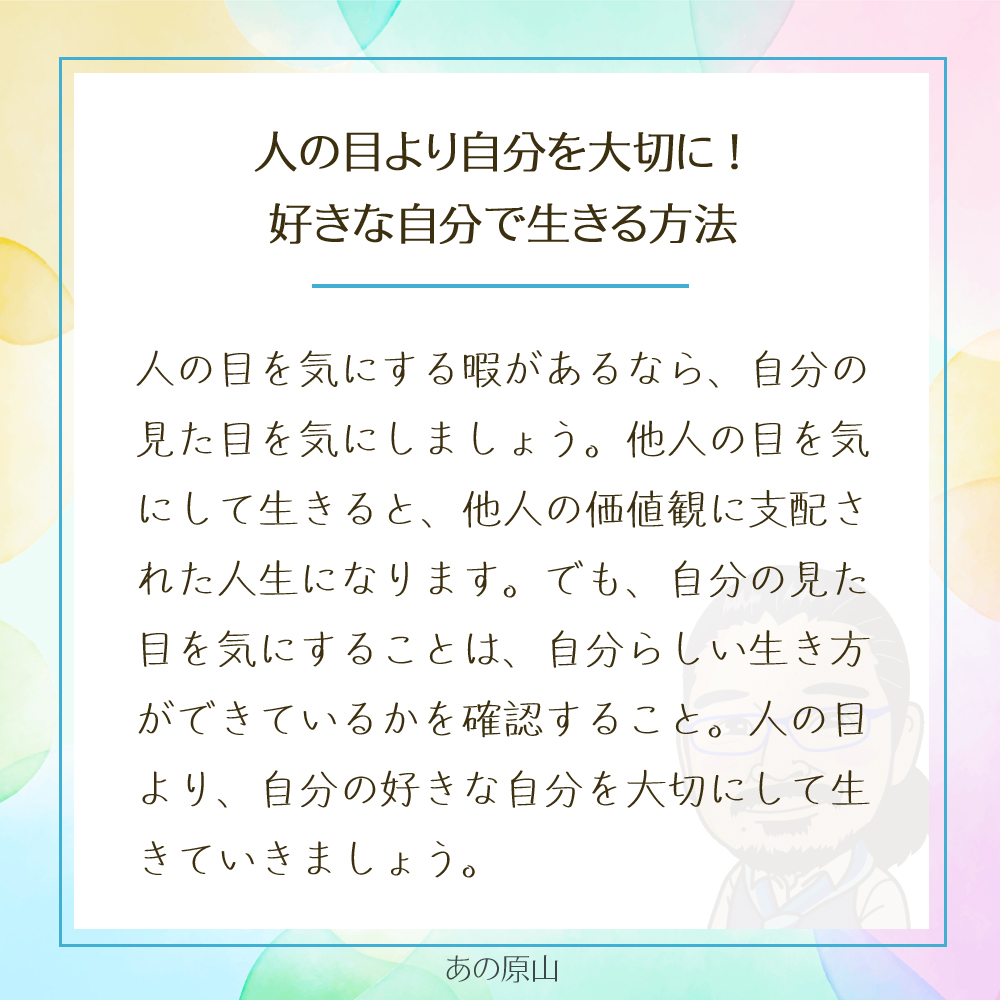 人の目を気にする暇があるなら、「今の自分が好きかどうか」を気にしてみてください。