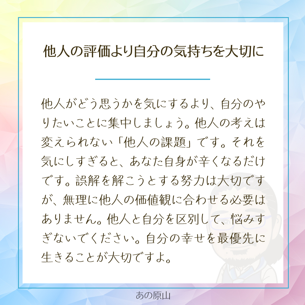 あなたの人生は、あなた自身のものであって、誰かの評価のためにあるわけではありません。