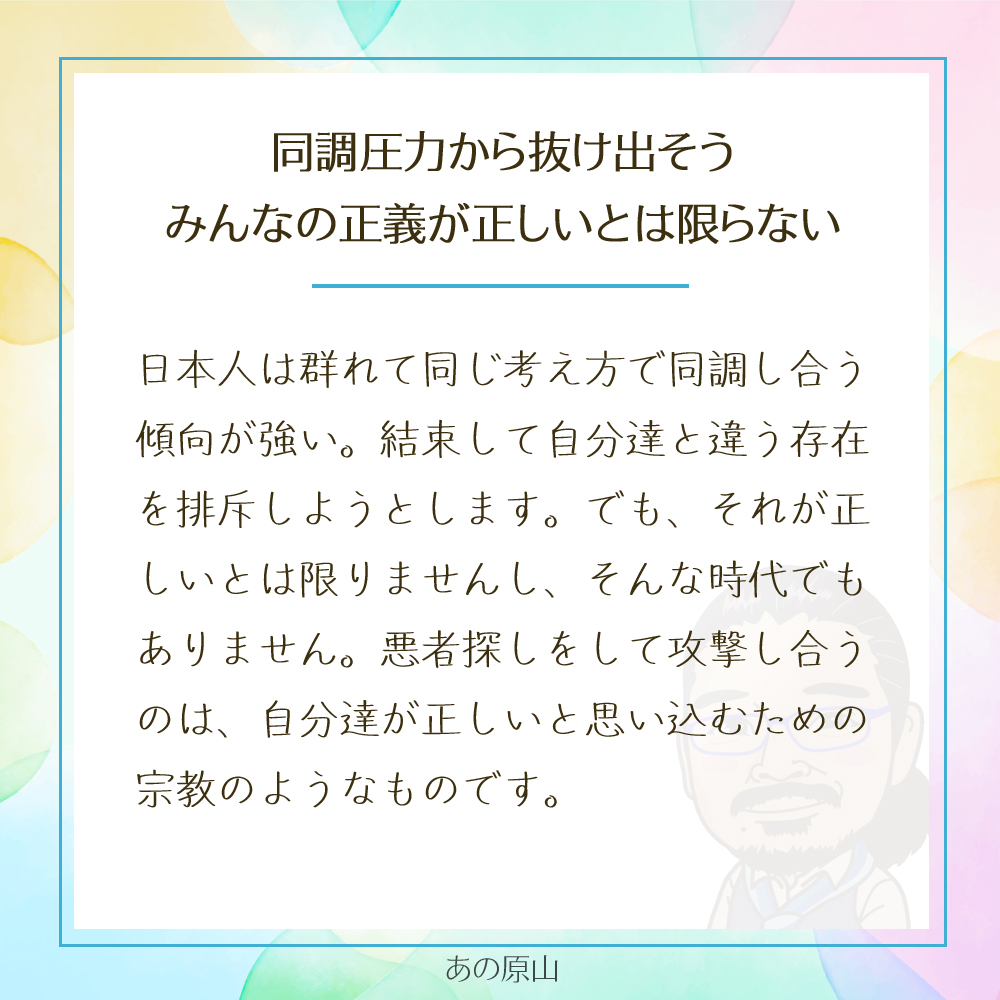 日本では、「空気を読むこと」や「和を乱さないこと」が美徳とされることが多く、私たちは知らず知らずのうちに「みんなと同じ」であることを求められてきました。