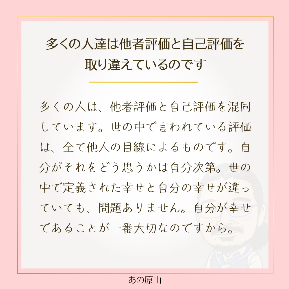 他者評価に引っ張られてしまうと、本当の自分の気持ちを見失い、自分らしい幸せを感じられなくなってしまいます。