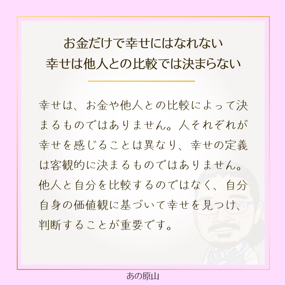 「お金だけでは幸せになれない」という言葉を耳にすることがあるかもしれませんが、それは本当にその通りです。