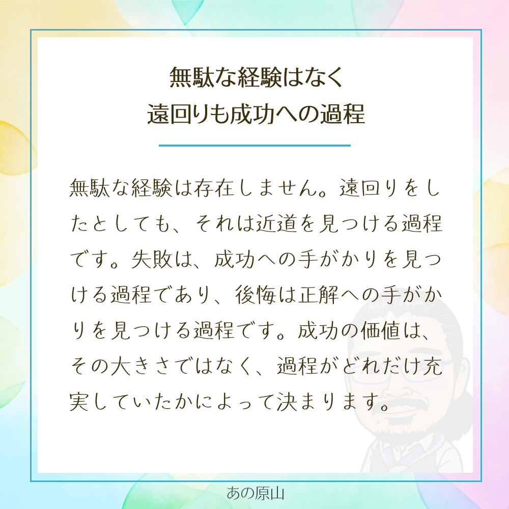 でも、実は「遠回り」だと感じたことが、後になって「必要な経験だった」と思うことが多いのです。