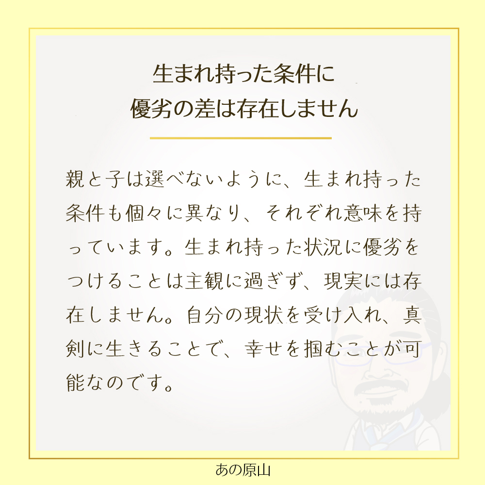 生まれ持った条件に優劣の差は存在しません。