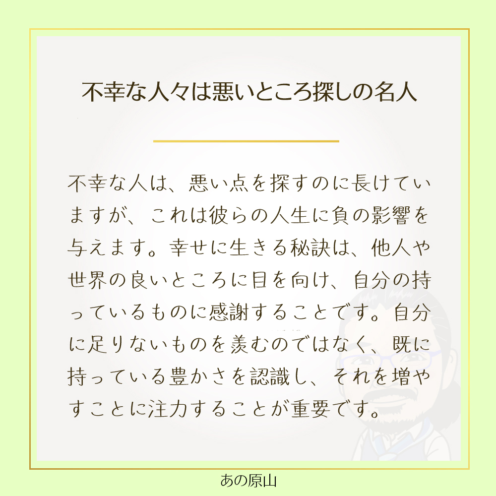 不幸な人は、物事の悪い点を見つけるのが得意ですが、それは人生に負の影響を与えてしまいます。