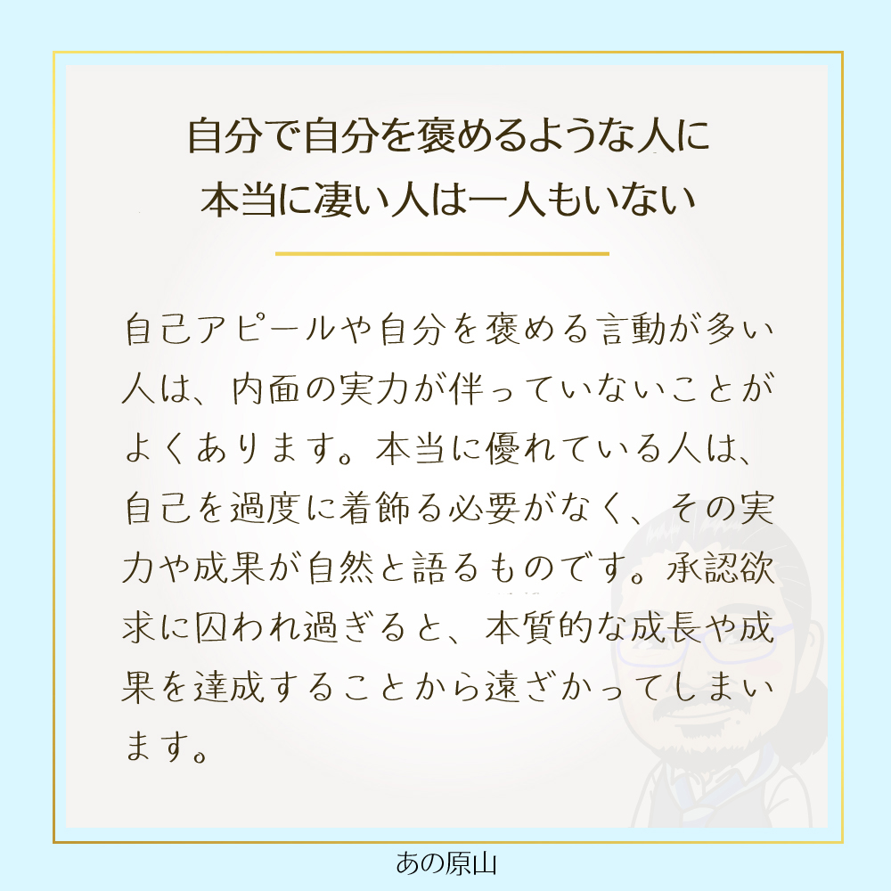 自分で自分を褒めるようなことを言っている人に、本当に凄い人は一人もいません。