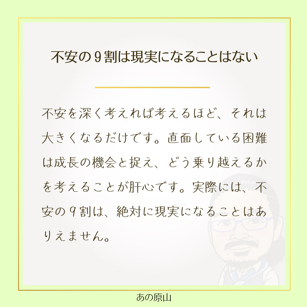 不安に囚われずに、どうしたらその状況を乗り切れるのかを常に考えるようにしましょう。