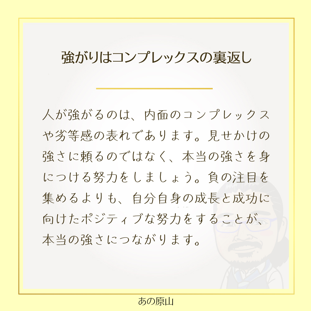 しかし、劣等感に囚われて自分を飾るよりも、その劣等感を乗り越えて本当に成長するための努力をすることが、真の強さにつながります。
