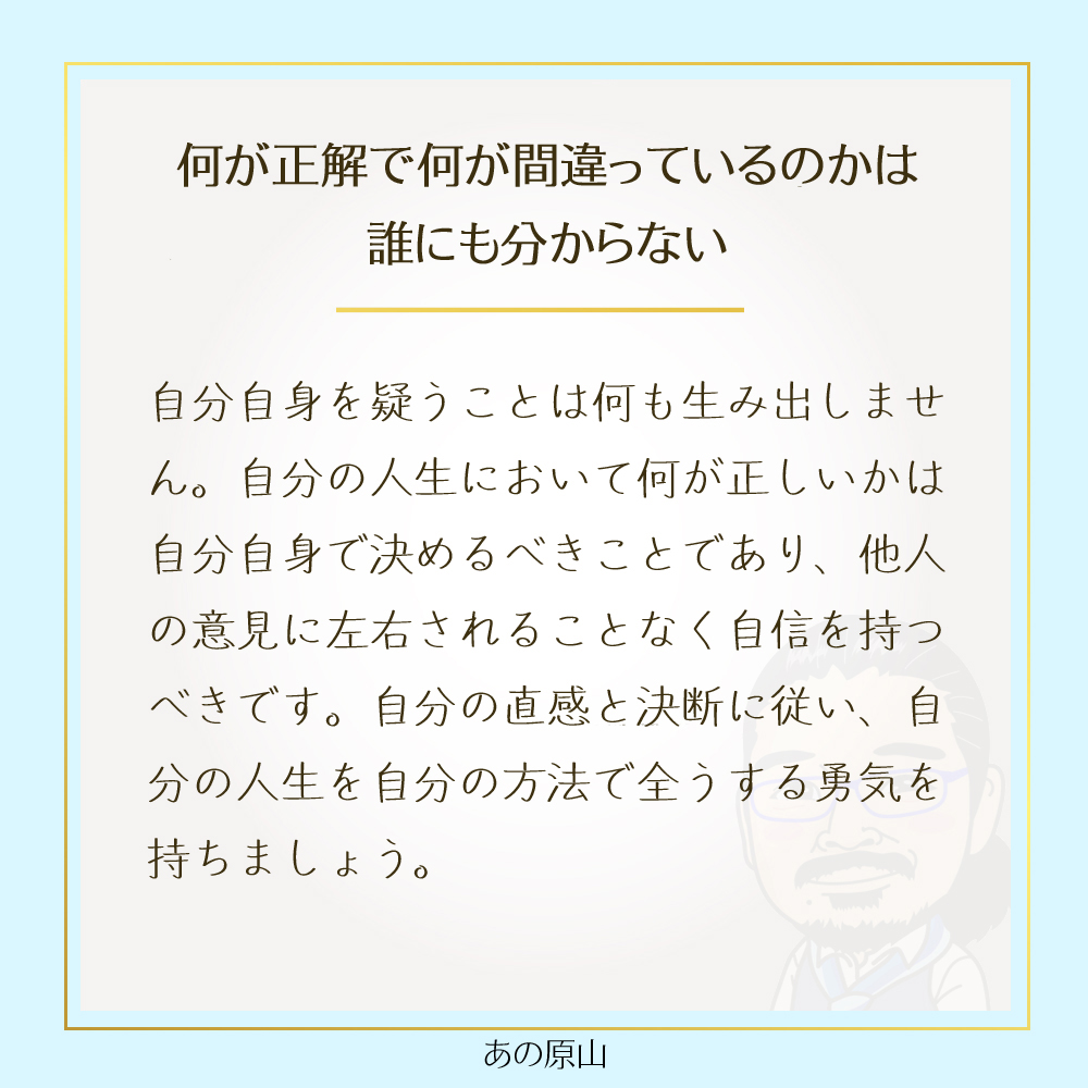 あなたの人生において、何が正しいかを決めるのは、他の誰でもない、あなた自身です。