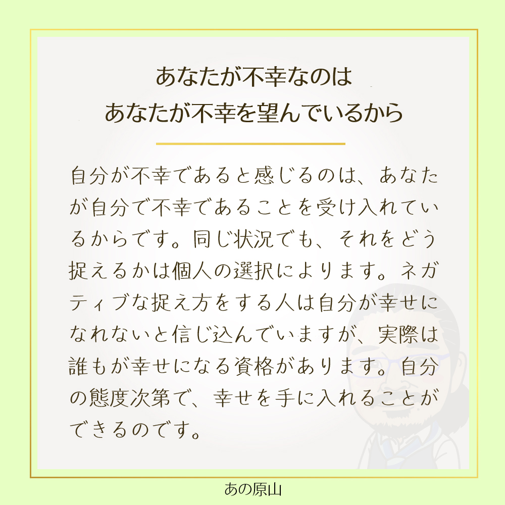 でも、実はあなたが不幸だとしたら、自分自身がそれを望んでいるからなのです。