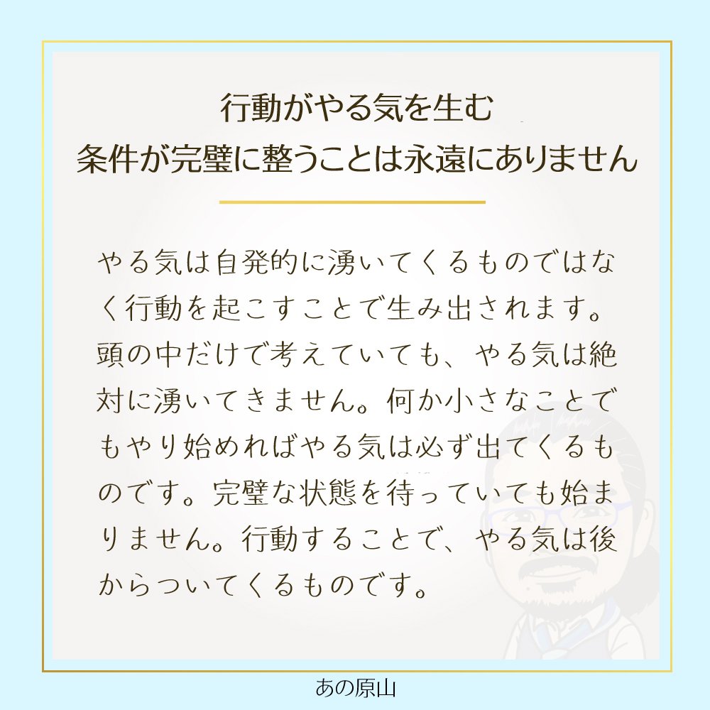 行動を起こすことで、やる気を引き出し、前向きに進んでいきましょう。