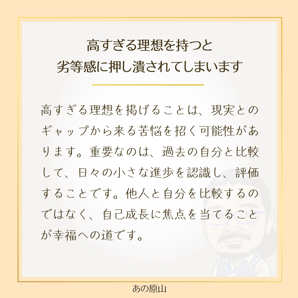 夢を叶えるために努力することは大切ですが、あまりにも高すぎる理想を持つと、劣等感に押し潰されてしまいます。