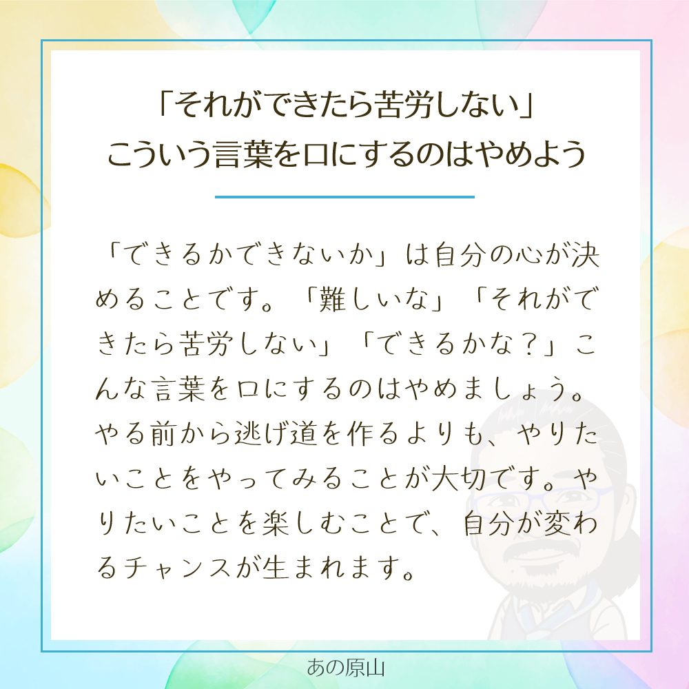 「難しいな」「それができたら苦労しない」「できるかな?」こんな言葉を口にするのはやめましょう。