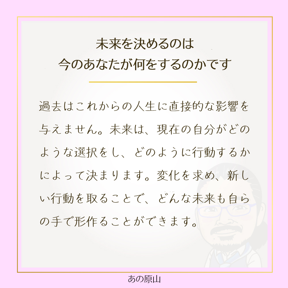 もちろん、過去から影響を受けることはありますが、未来を決めるのは今のあなたの行動次第です。
