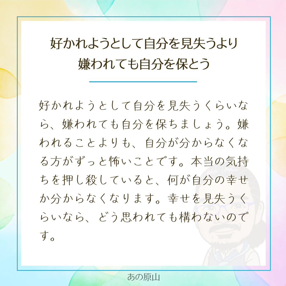 「好かれたい」「嫌われたくない」という気持ちに縛られて、自分を見失っていませんか?
